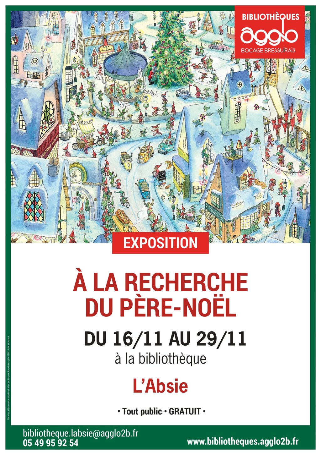 Du 16/11 au 29/11, c'est l'exposition "à la recherche du Père-Noël" à la Bibliothèque de l'Absie !