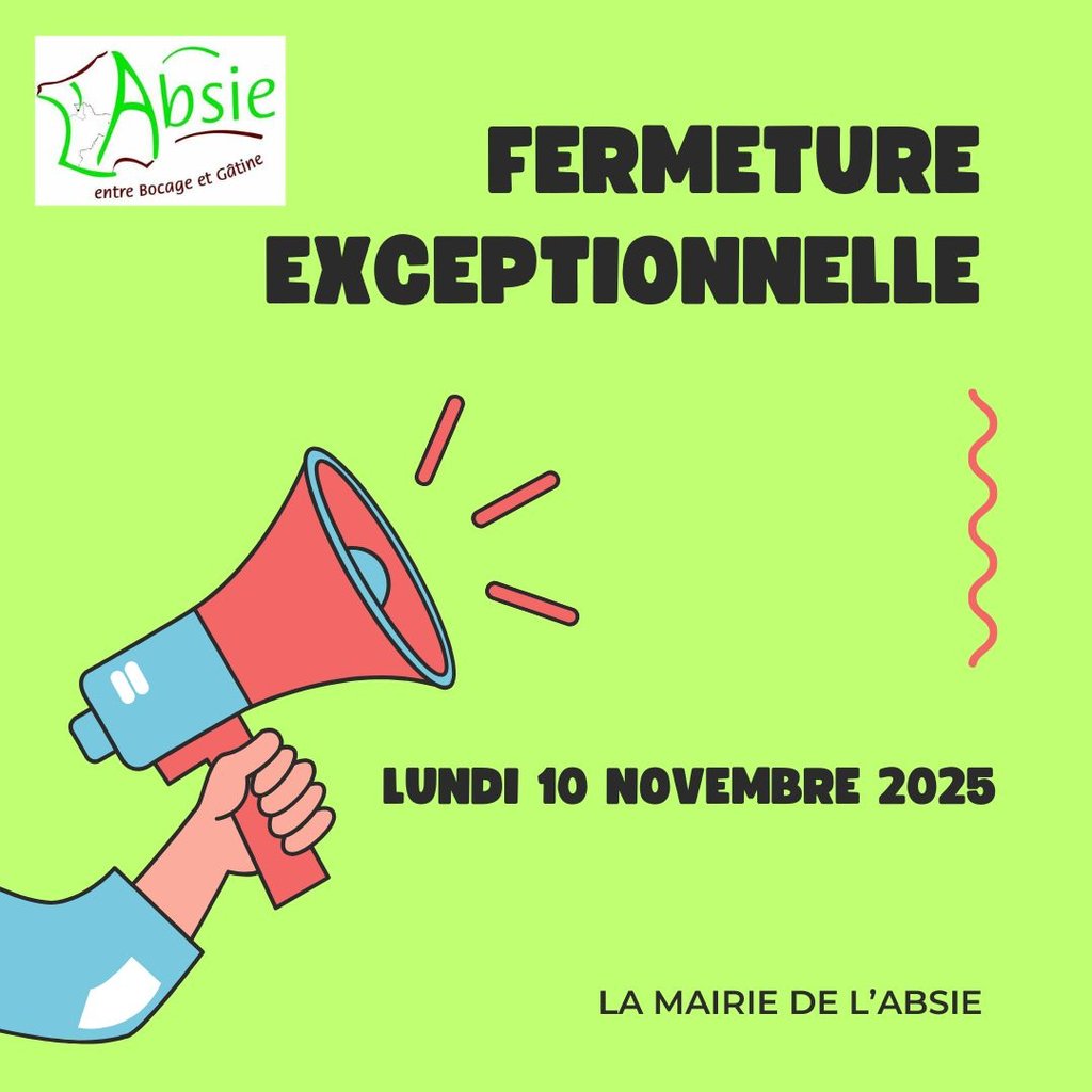 FERMETURE MAIRIE DE L'ABSIE - LUNDI 10 NOVEMBRE 2025