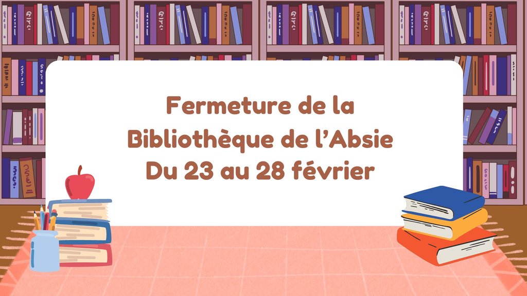 ℹ FERMETURE BIBLIOTHEQUE ABSIE - DU 23 AU 28 FÉVRIER 📚