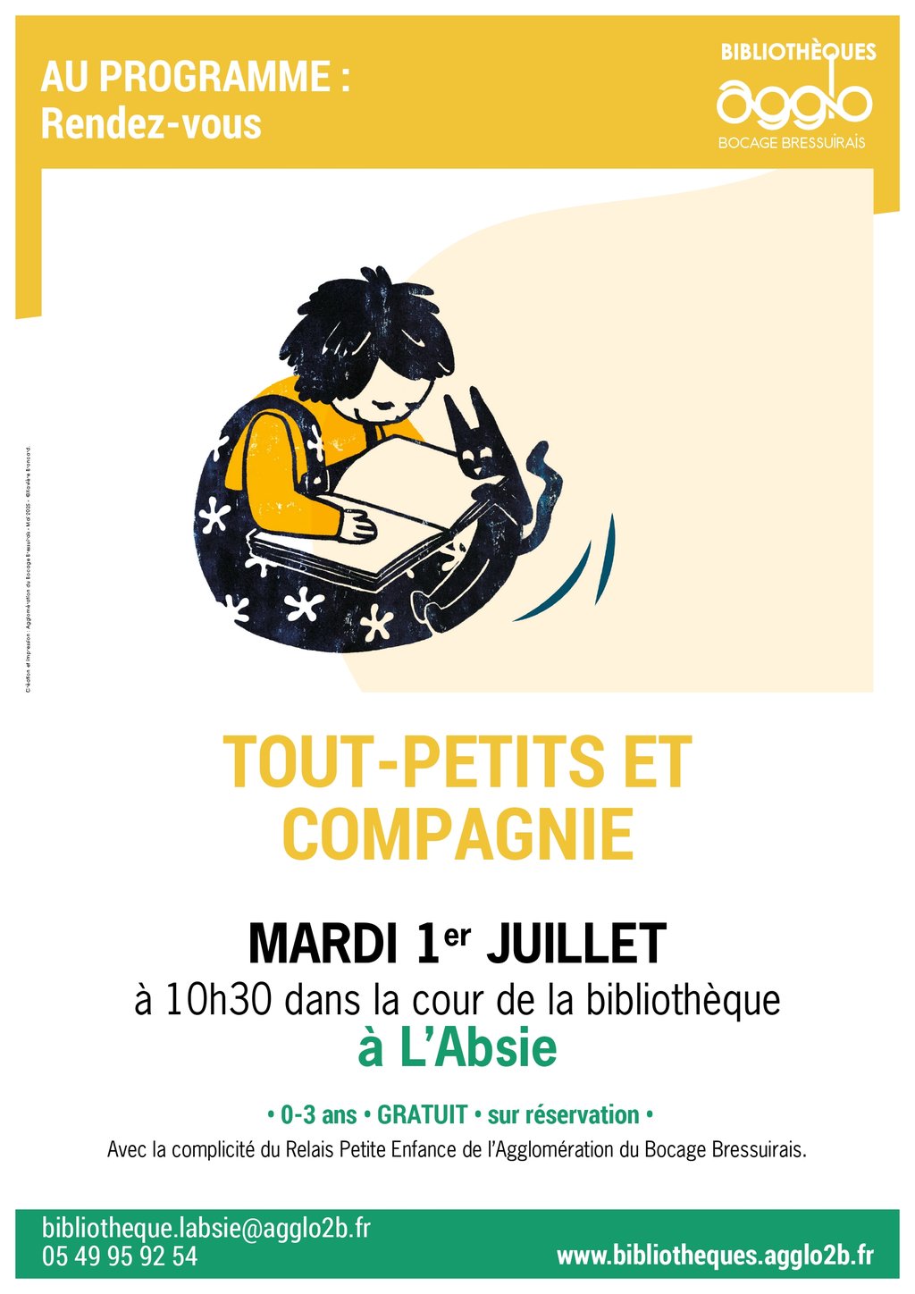 Le mardi 1er juillet aura lieu à la Bibliothèque de l'Absie une séance "tout-petits et compagnie".